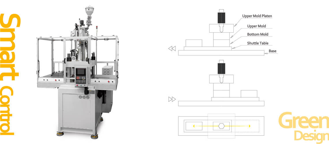 • With double slide table or rotary design, put in, takeout products and molding finish at the same time, which is more safe and efficient for production , then reduce the cost of production.