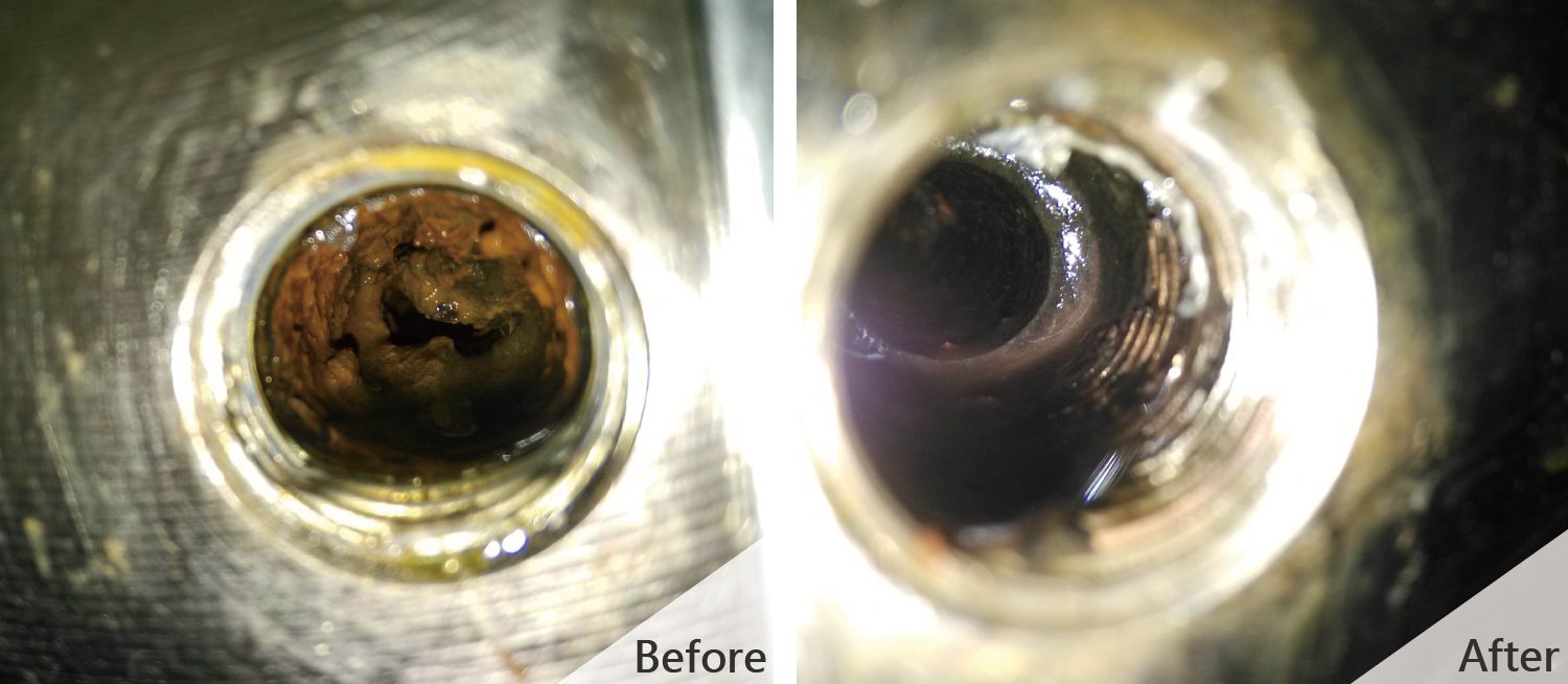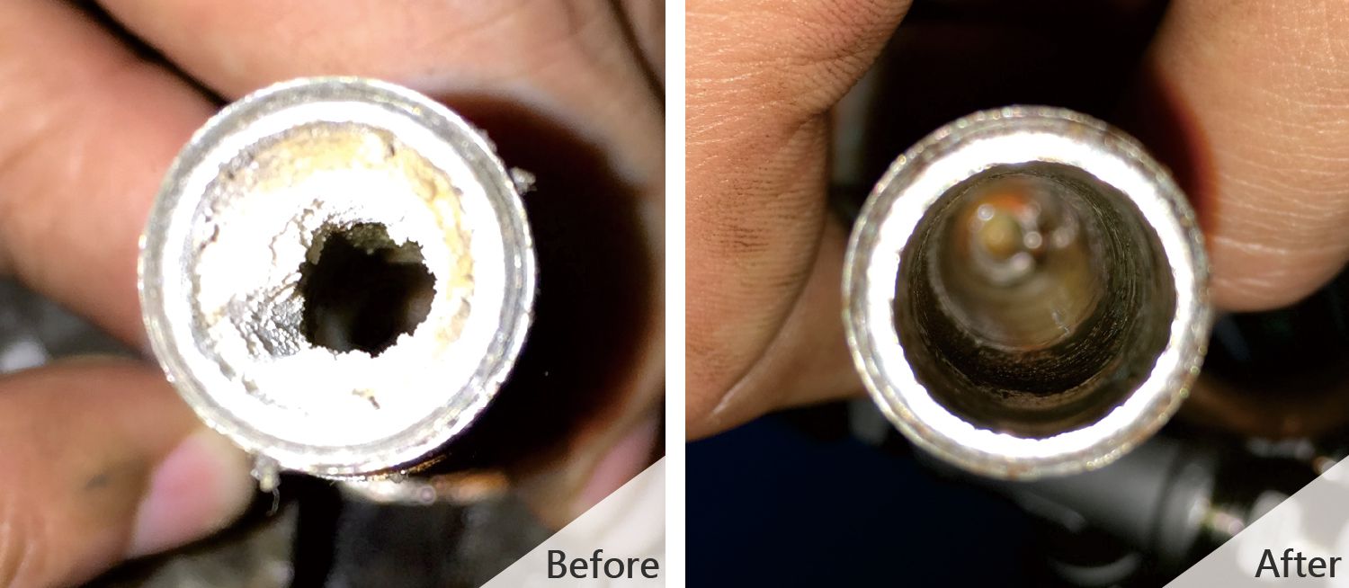 The patented Eco-Friendly technology, Mix the Air and Water then flush the inner wall of the channel with high-pressure and speedy flow. Repeated pulse to peel off the scale and rust attached on the wall, to clean the pipe fast and efficient.